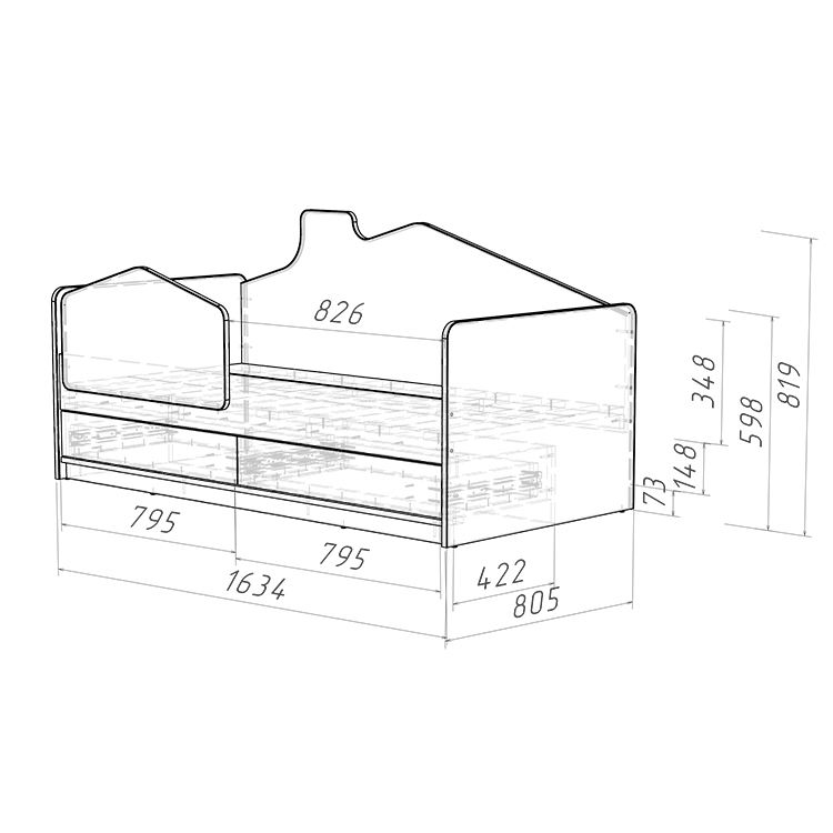 Особенностью этой кровати является задний борт, стилизованный под домик, что создает атмосферу увлекательной игры и фантазии для вашего малыша. Невысокая конструкция кровати обеспечивает безопасность и легкий доступ для ребенка.