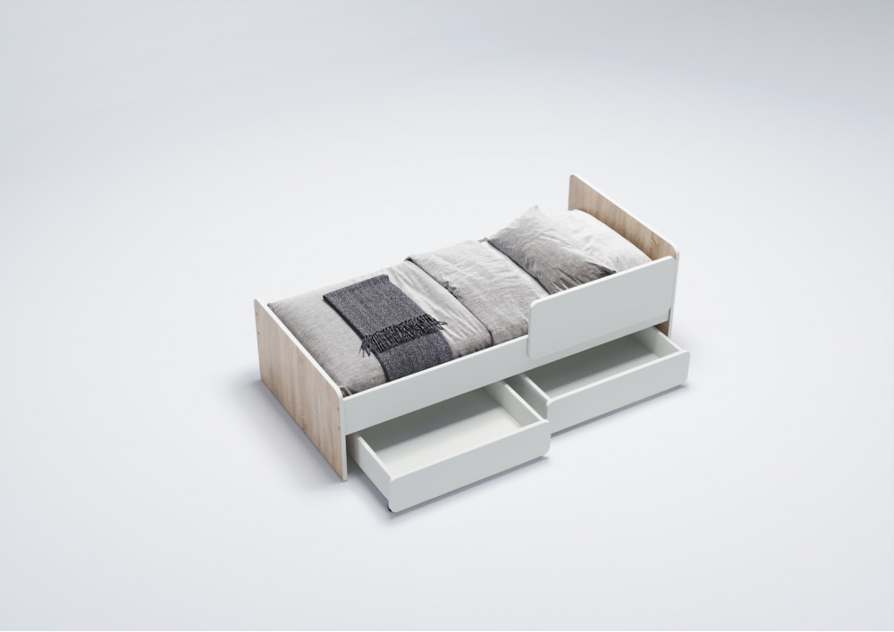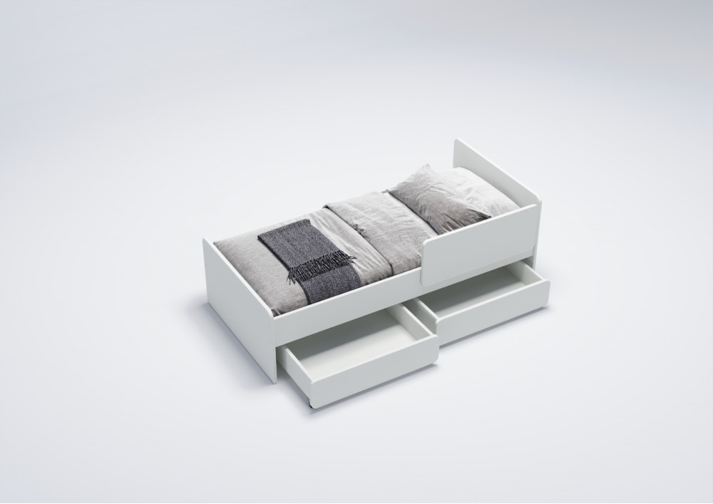 2. Выкатные ящики: Кровать оснащена двумя выкатными вместительными ящиками, которые легко выдвигаются благодаря прямоходным колесам. Это удобное решение для хранения игрушек, одежды или постельного белья, помогая поддерживать порядок в детской комнате.