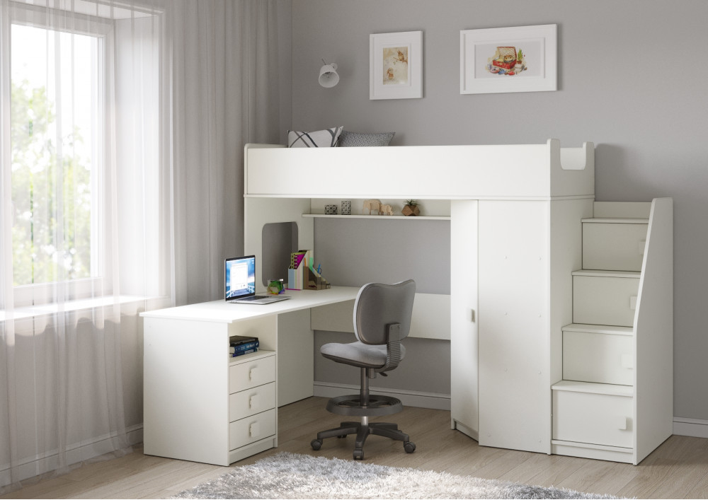 Учебная зона со столом под спальным местом открывает возможности для письменных работ, а также здесь удобно расположить ноутбук.