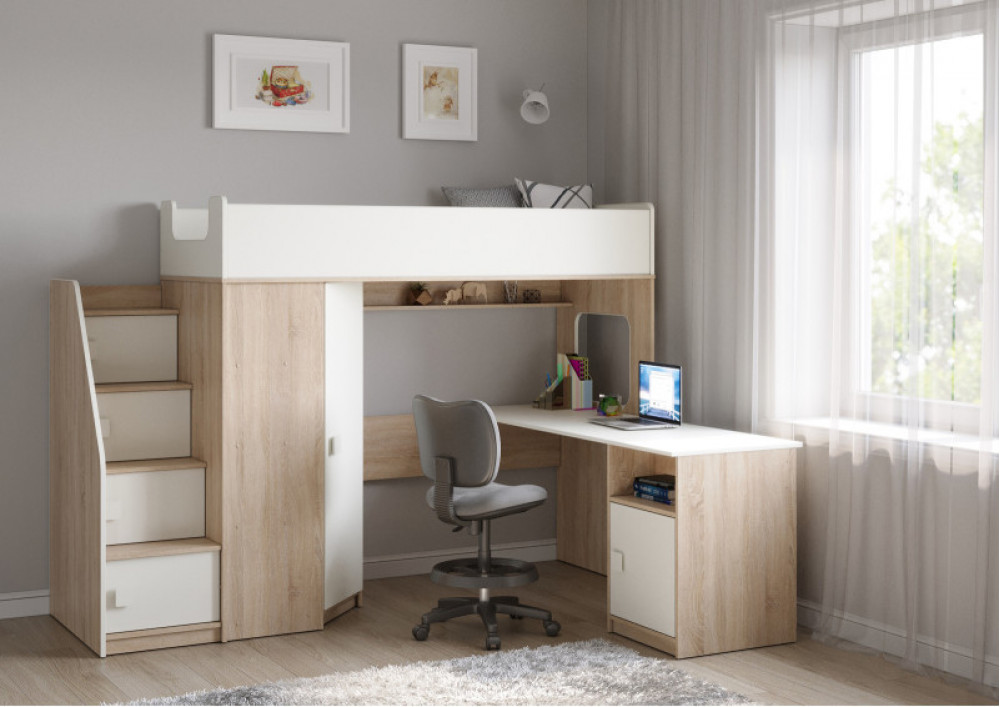 Учебная зона со столом под спальным местом открывает возможности для письменных работ, а также здесь удобно расположить ноутбук.
