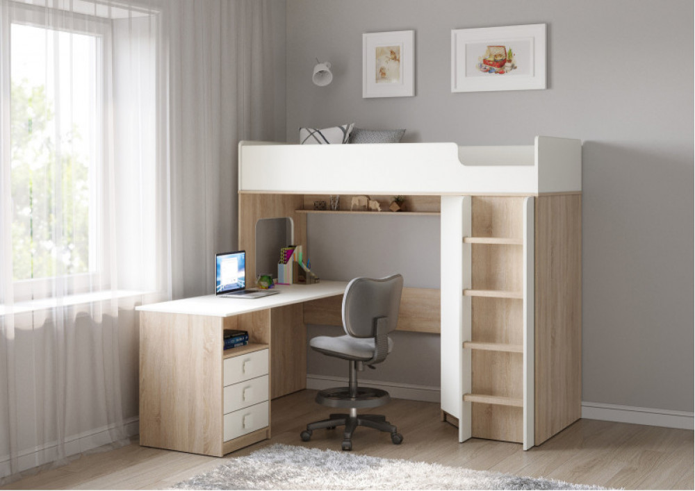 Учебная зона со столом под спальным местом открывает возможности для письменных работ,а также здесь удобно расположить ноутбук.
