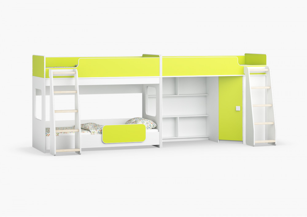 Трехъярусная кровать Легенда 42.4.3 - решение для троих детей с угловым шкафом.