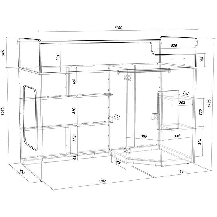 Встроенный угловой шкаф удобен для хранения одежды, белья, игрушек или иных вещей.